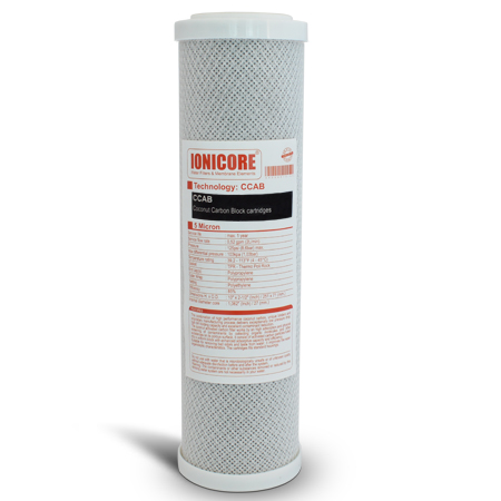 Ανταλλακτικό φίλτρο Ionicore CCAB 5 micron με φυτικό ενεργοποιημένο άνθρακα τεχνολογίας Coconut Carbon Block. Αυτός ο υψηλής απόδοσης συνδυασμός μπλοκ άνθρακα παράγεται μέσω ιδιόκτητης πατενταρισμένης διαδικασίας και προσφέρει χαμηλότερη πτώση πίεσης, υψηλή διηθητική ικανότητα σωματιδίων και εξαιρετική απορρόφηση ρύπων.