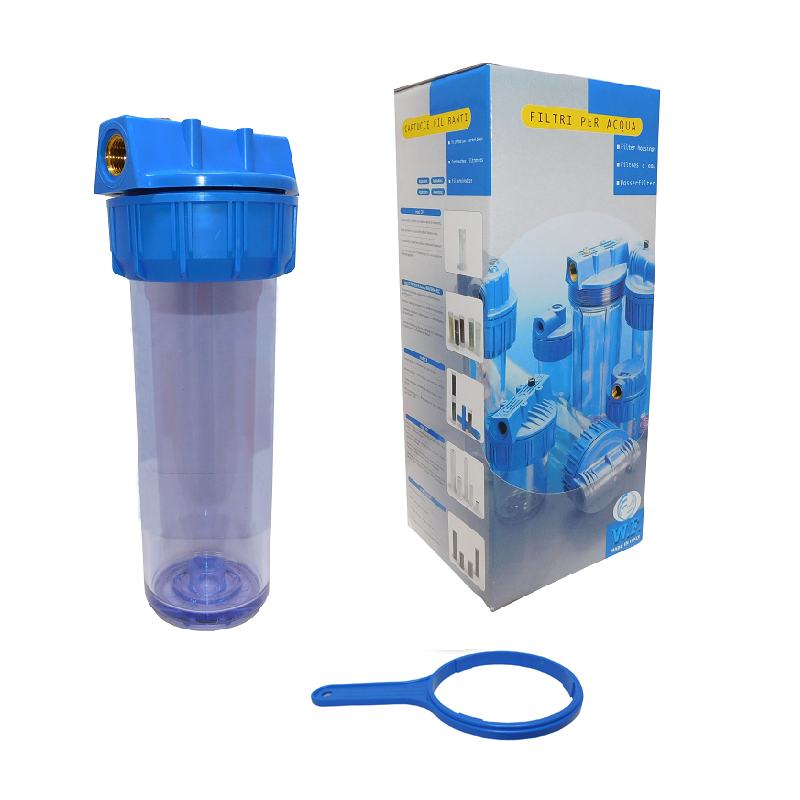 Τα περιβλήματα φίλτρου τριών τμημάτων της Ιταλικής εταιρείας W.F. κατασκευάζονται από μη τοξικά υλικά και είναι κατάλληλα για την διήθηση πόσιμου νερού οικιακών και βιομηχανικών εφαρμογών. Διαθέτουν διάφανο δοχείο κατασκευασμένο από στυρένιο-ακρυλονιτρίλιο (SAN) και ενισχυμένο καπάκι περιβλήματος πολυπροπυλενίου (PP) με σύστημα εξαερισμού.